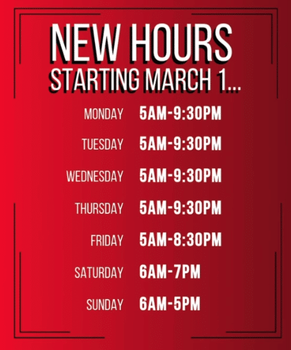 Starting March 1, we are expanding our hours to give members more opportunities to train, recover, and stay consistent with their routines.